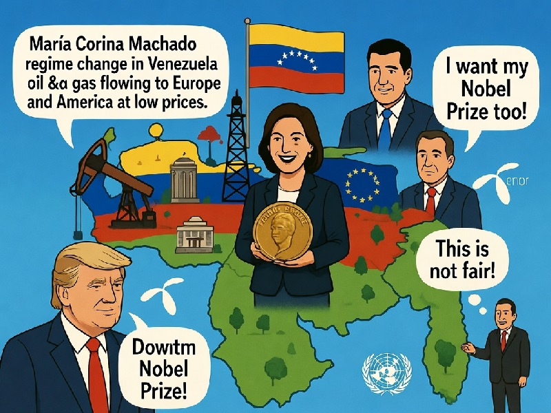 Step one: Elevate the West’s favored opposition figure to hero status. María Corina Machado, fresh off her 2025 Nobel Peace Prize for championing “democratic rights,” (awarded precisely for opposing the Bolivarian government) gets positioned as the ideal transitional leader. [Read more…]
